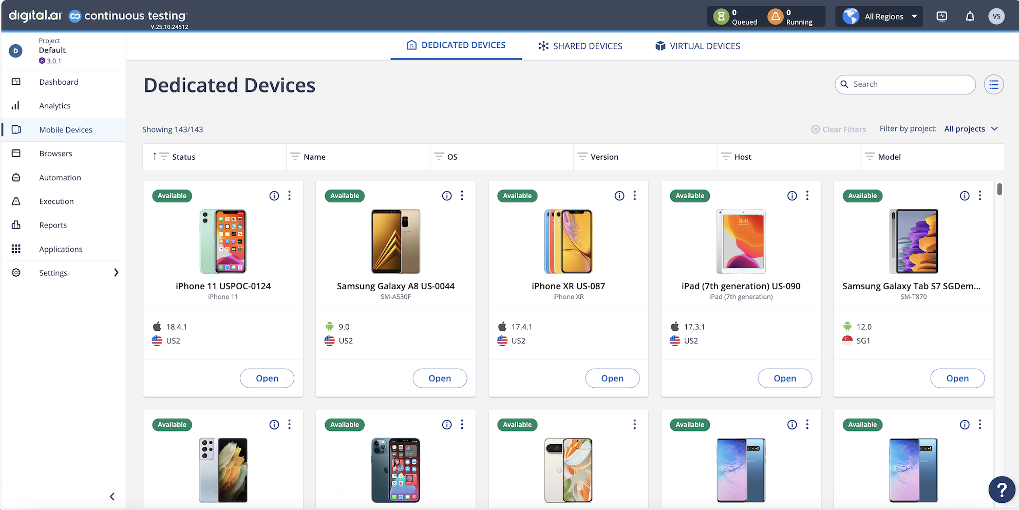 To get started with Live Mobile Devices Testing, navigate to the Mobile Devices page to view all Mobile Devices available to you.