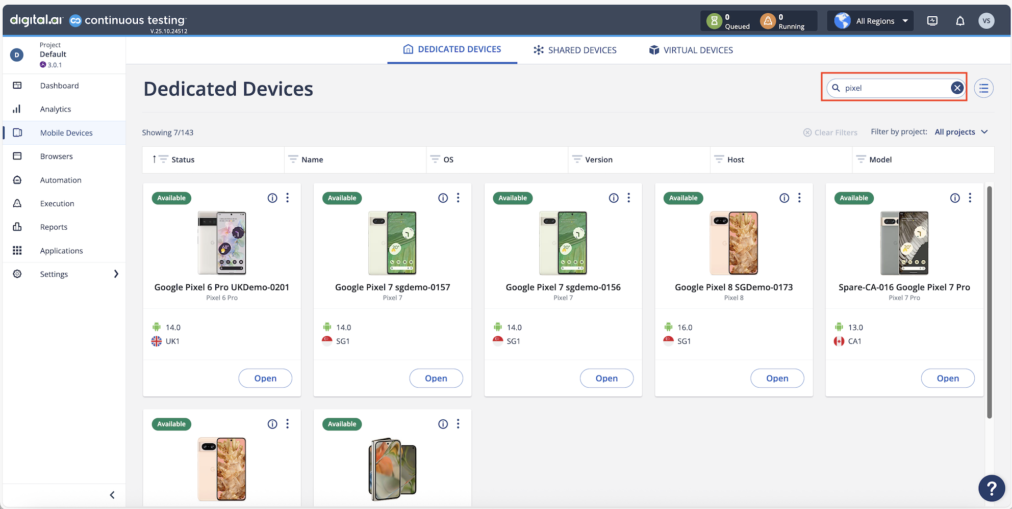 On the Mobile Devices page, use the filter options and search bar to find a specific mobile device. Click Open.