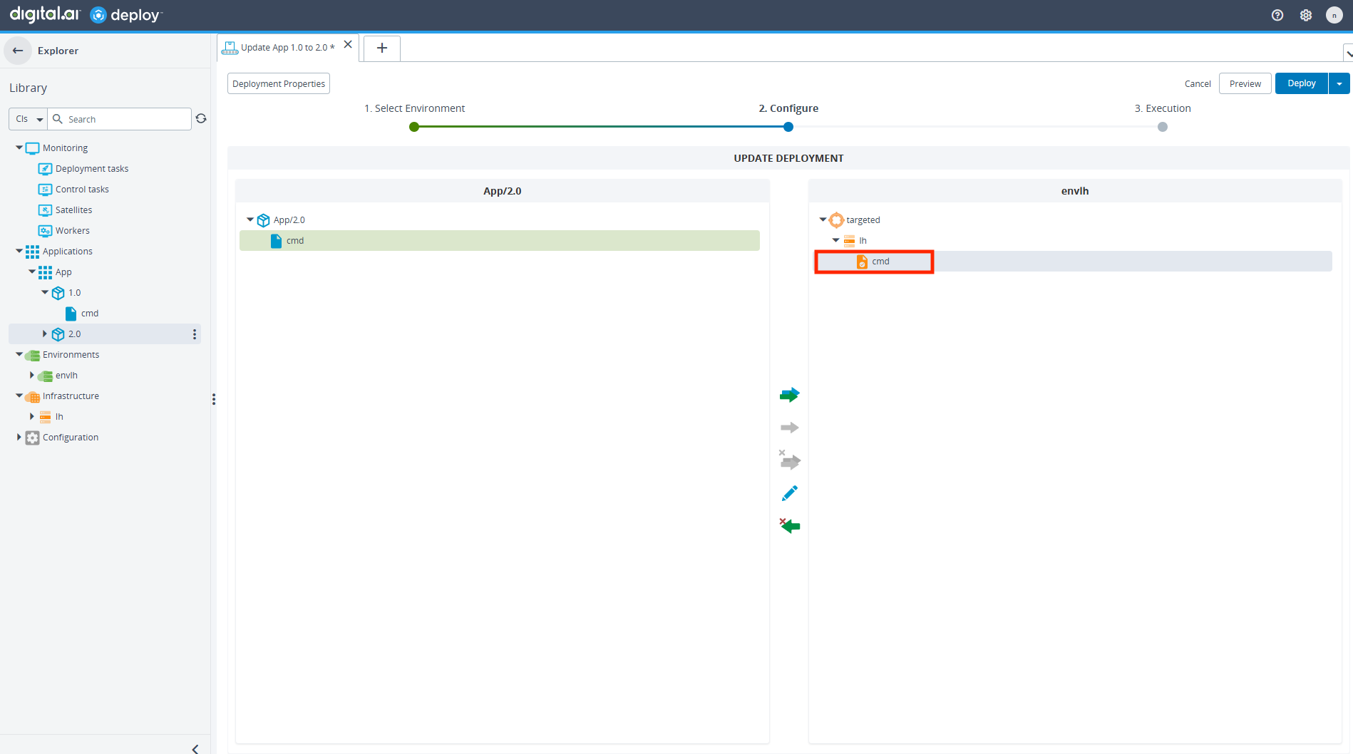 - During the Configure step of an update deployment, locate and double-click the deployed Command item.